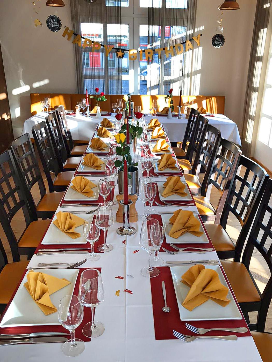 Sie wollen eine Feier ausrichten und suchen noch den richtigen Rahmen dafür? Bei uns sind Sie genau richtig: Unser gesamtes Team steht zu Ihrer Verfügung, damit Ihre Feier zu einem einmaligen Erlebnis wird.